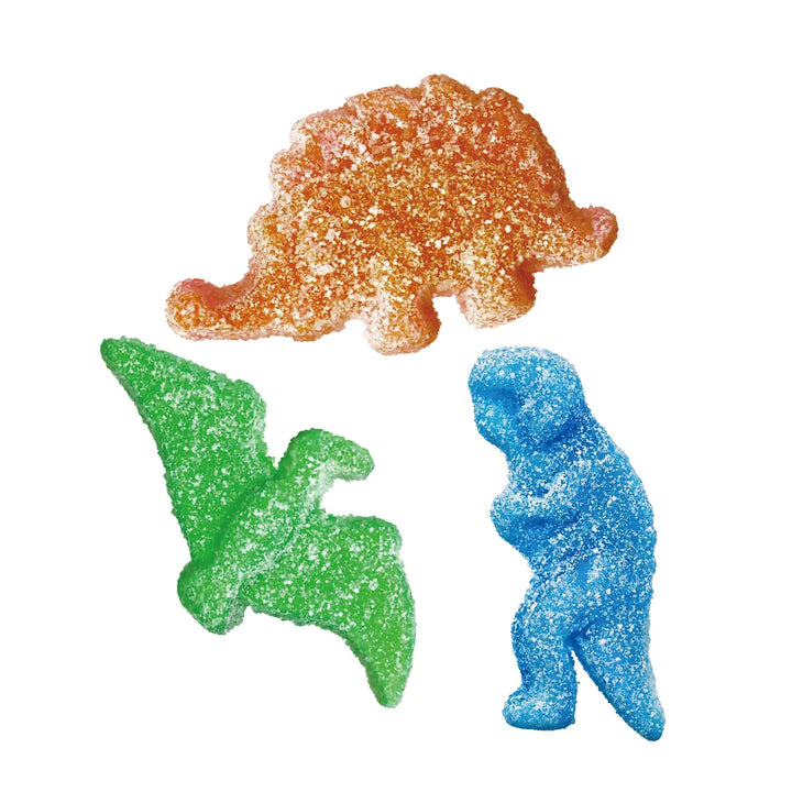 One of the wilder members of the Trolli family: the Dinorex. Creativity meets sophistication with these crazy creations. Their unique consistency and fruity-sour taste make for a delicious chewing experience! And what's more, they're 100 % vegan. Flavours: Strawberry-raspberry, limquat-lime, lemon, orange, raspberry, blueberry.